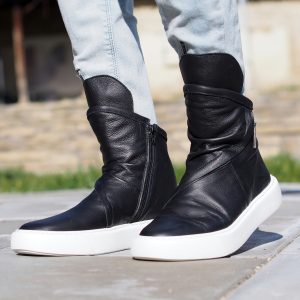 Men’S Genuine Leather Sneakers Boots Mens Black For