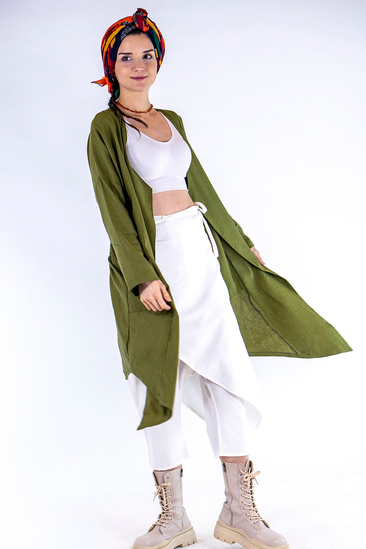 Jade Linen Kimono Bohemian Style Robe Dress Long