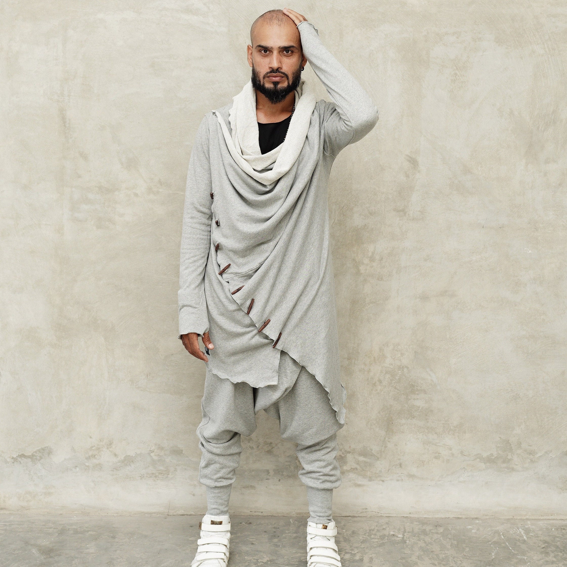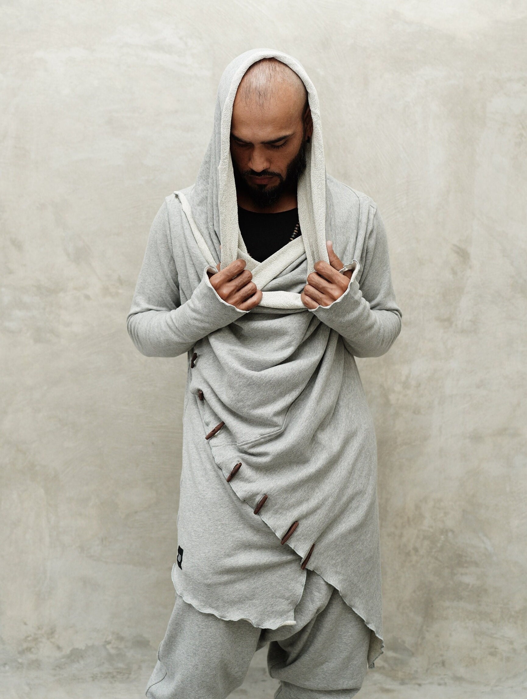 KENOBI Misty Grey – Stylish Jedi Style Long-sleeve Hoodie, Burning Man Outfit, Festival Outfit, Grey Hoodie, Jedi Robe, Gift For Him, Samurai Outfit, Shaman Clothing, Dune Cosplay, Rave Clothing, Hooded Cardigan, Dune Hoodie