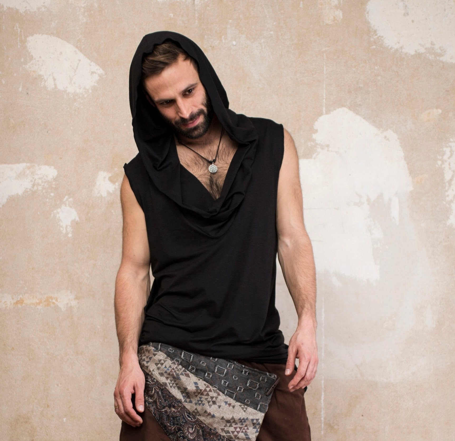 Burning Man Clothing Men, Sleeveless Hoodie, Jedi Hoodie, Bamboo Jedi top, Jedi Cosplay, Dune Costume, Boho Clothes, Assassin hoodie, Rave Clothing