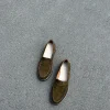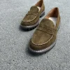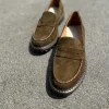 Olive Suede Penny Loafers for Women