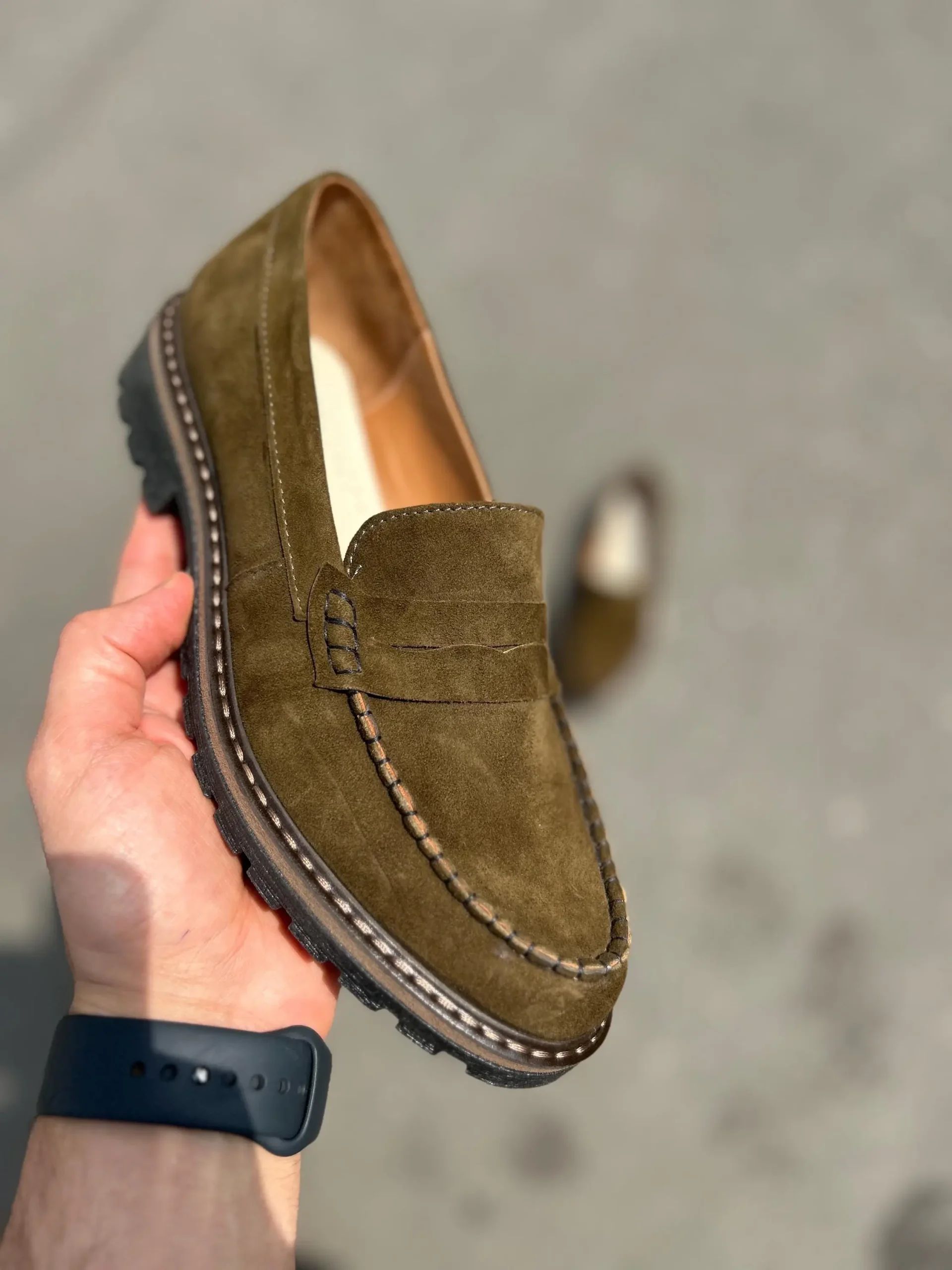 Step up your everyday style with these handcrafted olive green suede penny loafers. Featuring soft suede leather, a sturdy rubber sole, and detailed stitching, they offer both comfort and elegance. Perfect for casual or smart-casual outfits. Key features: 1. Handcrafted in our workshop in Kyiv.