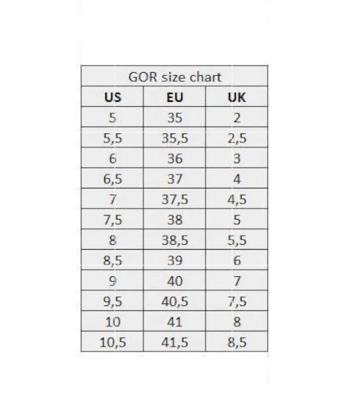 6. IMPORTANT: If you wear a half size, please order one size larger. __Size Conversion and Feet Measurements__ EU 36 US 6.0 UK 3.0 | 23.5 cm EU 37 US 6.5 UK 4.0 | 24.5 cm EU 38 US 7.5 UK 5.0 | 25.0 cm EU 39 US 8.5 UK 6.0 | 25.5 cm EU 40 US 9.0 UK 7.0 | 26.0 cm EU 41 US 10 UK 8.0 | 26.5 cm